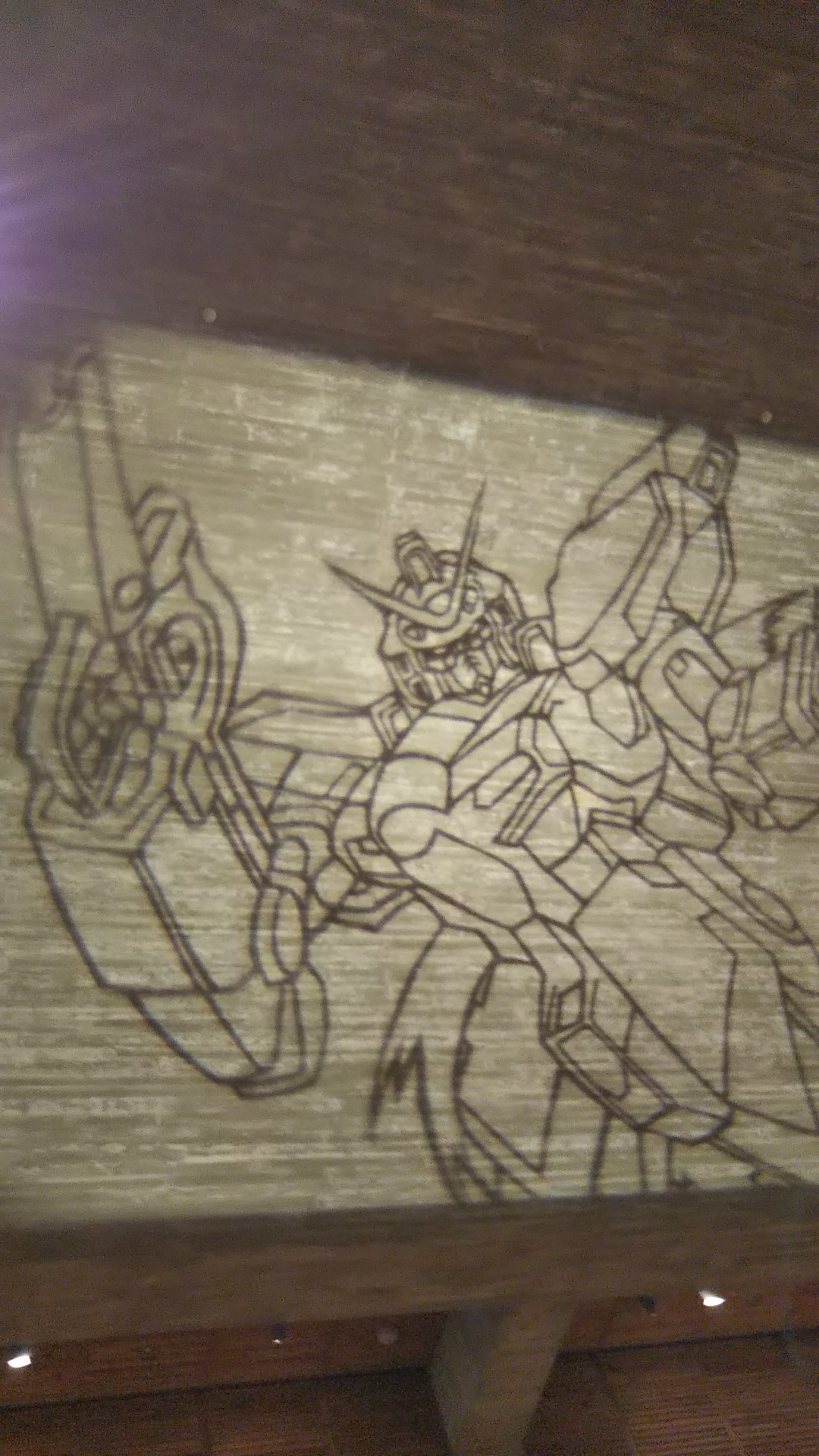 美術館の天井には色々なガンダムが出迎えてくれました。
