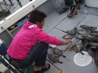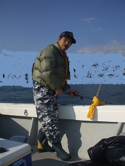 (魚を並べる船長)